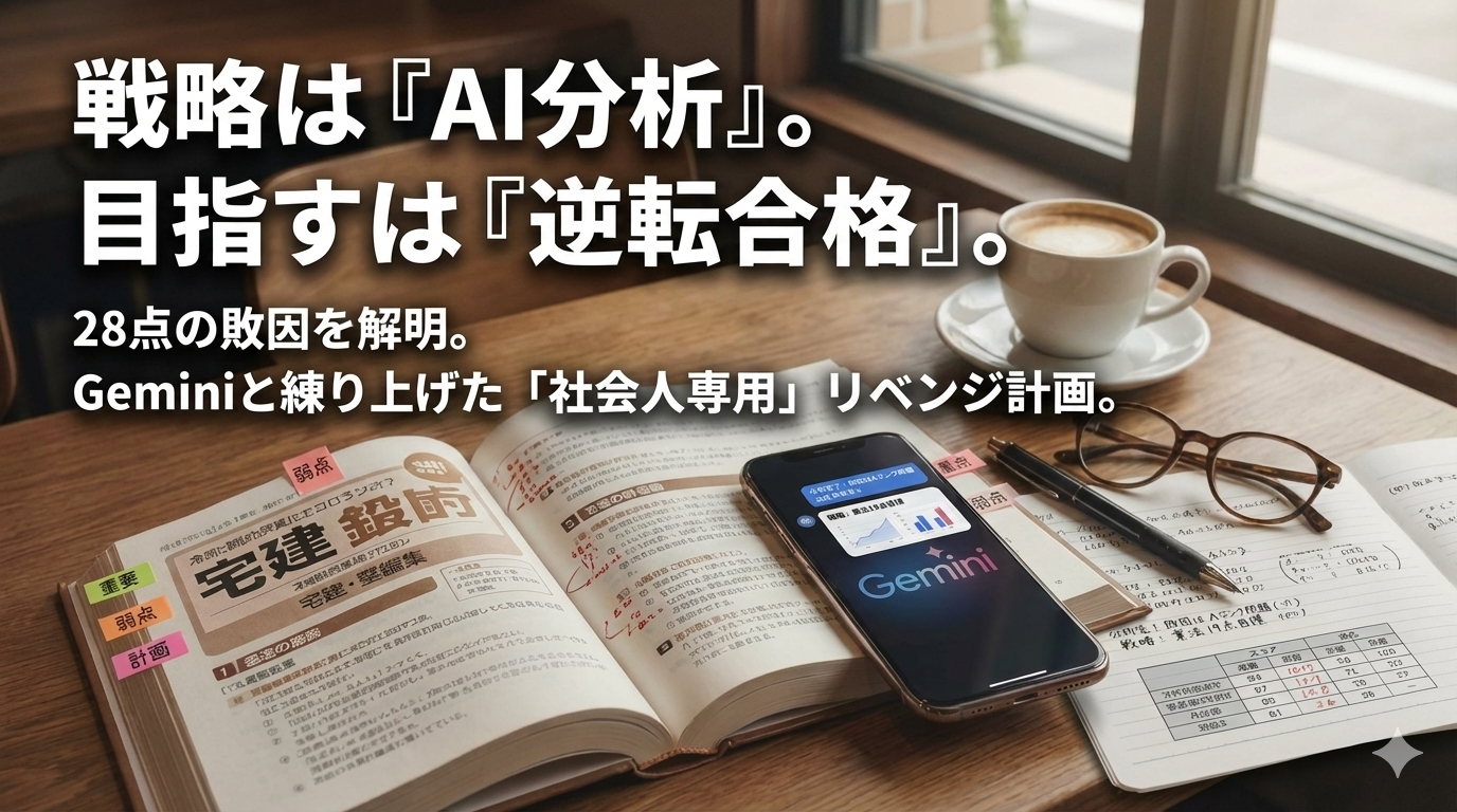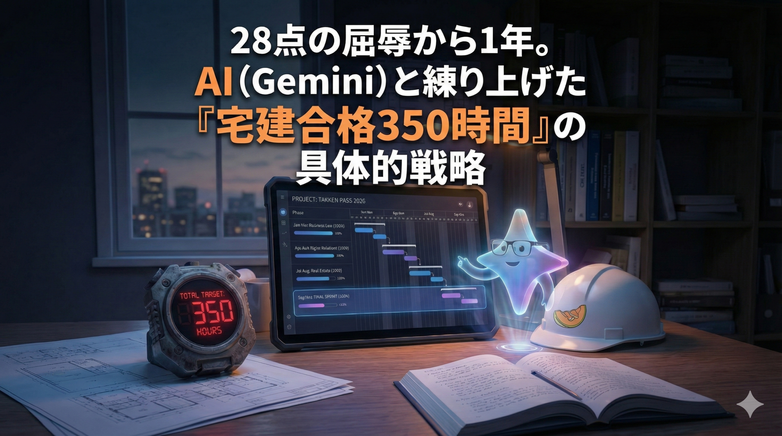 28点の屈辱から1年。AI(Gemini)と練り上げた「宅建合格350時間」の具体的戦略